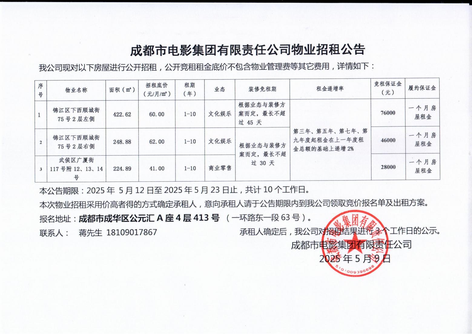 成都市電影集團(tuán)有限責(zé)任公司關(guān)于中國電影推優(yōu)扶持計(jì)劃暨成都高新西嶺科技園數(shù)字影視文旅產(chǎn)業(yè)推介會(huì)舞美設(shè)備服務(wù)、物料印刷制作及現(xiàn)場(chǎng)執(zhí)行配套服務(wù)詢價(jià)結(jié)果公告