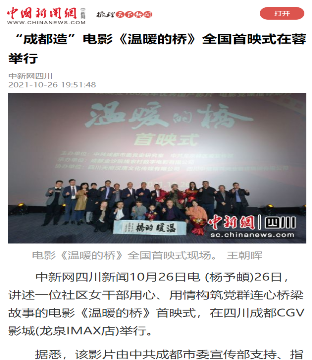展現(xiàn)社區(qū)干部為民辦實(shí)事風(fēng)采 成都造電影《溫暖的橋》首映