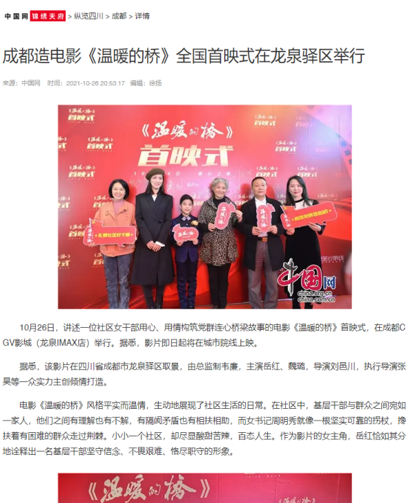 “成都造”電影《溫暖的橋》首映,岳紅還原的社區(qū)書記感人至深