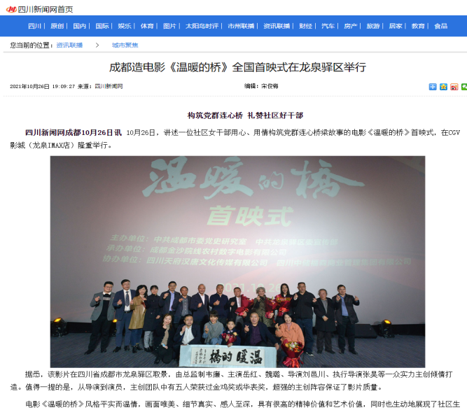 成都造電影《溫暖的橋》全國首映式在龍泉驛區(qū)舉行
